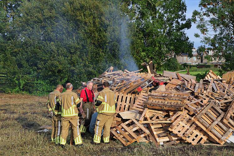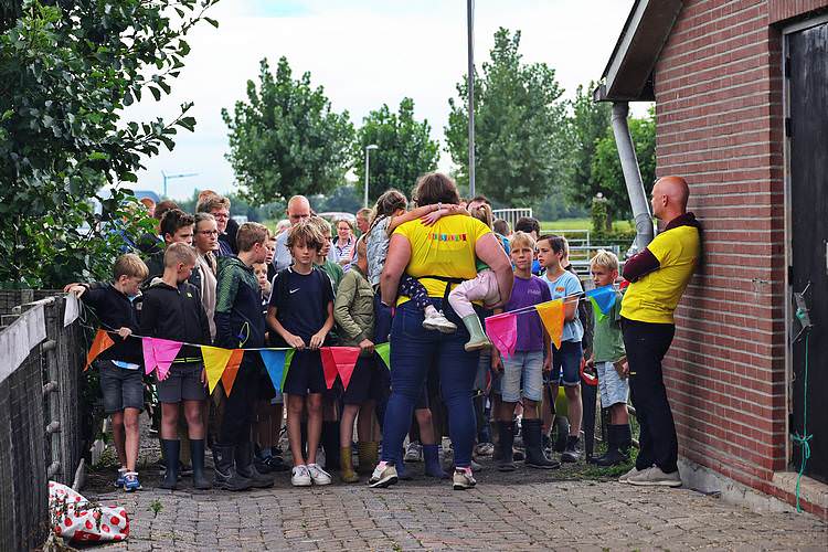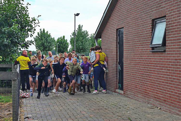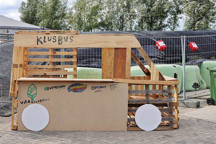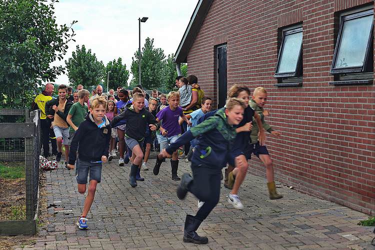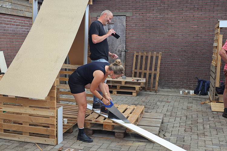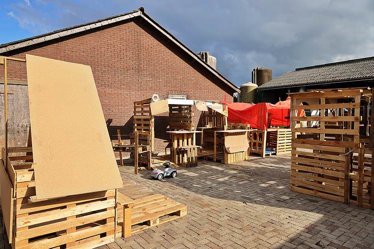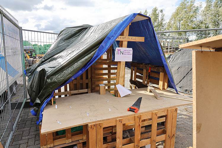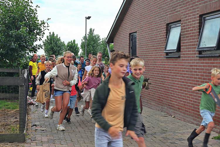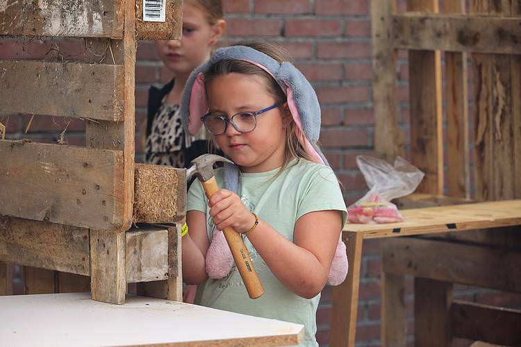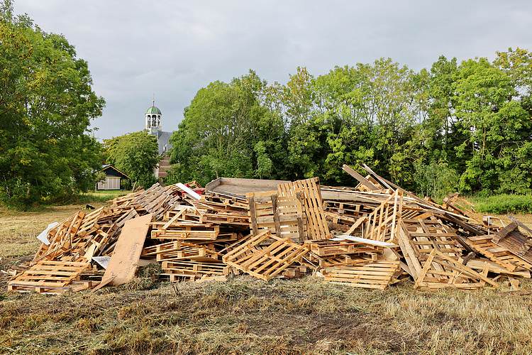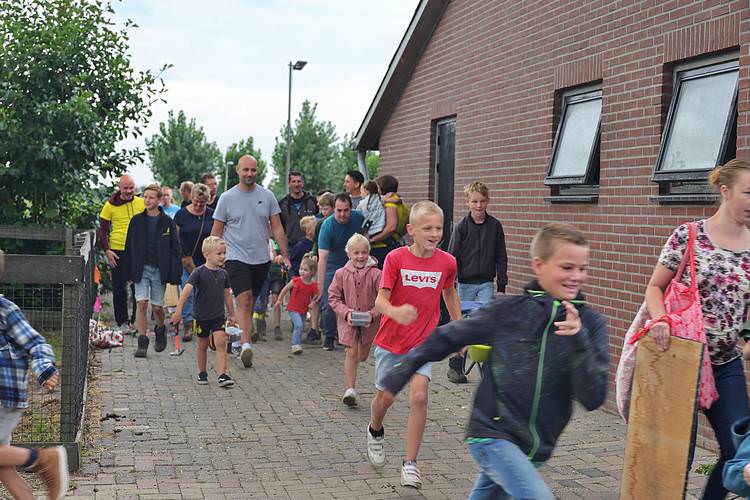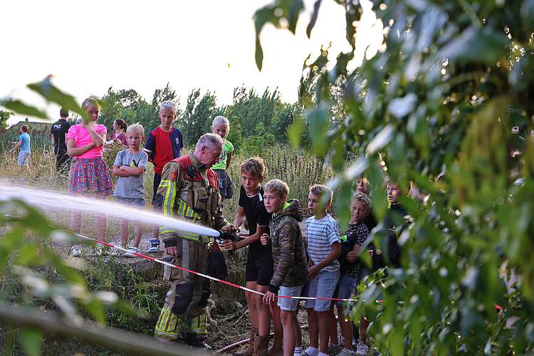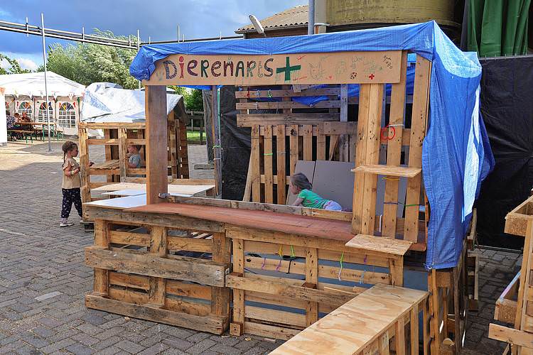 De speelweek en huttenbouw in de laatste vakantieweek was ook dit jaar weer op de bekende en vertrouwde locatie bij 'Boer Bert' aan de Groendijck. Op het erf lag al een grote stapel pallet’s en ander geschikt hout op de jeugdige timmerlieden (en hun assistentie) te wachten. Donderdag kon er vanaf 10 uur tot half 4 naar hartelust worden gebouwd met een lekkere lunch in de hutten. Vrijdag konden de hutten worden ingericht en was er de verkoping en een groot springkussen. Vanaf 2 uur kon er weer worden gesloopt en 's-avonds om 7 uur begon de verbranding van het sloophout op de 'Kromme Kamp'.