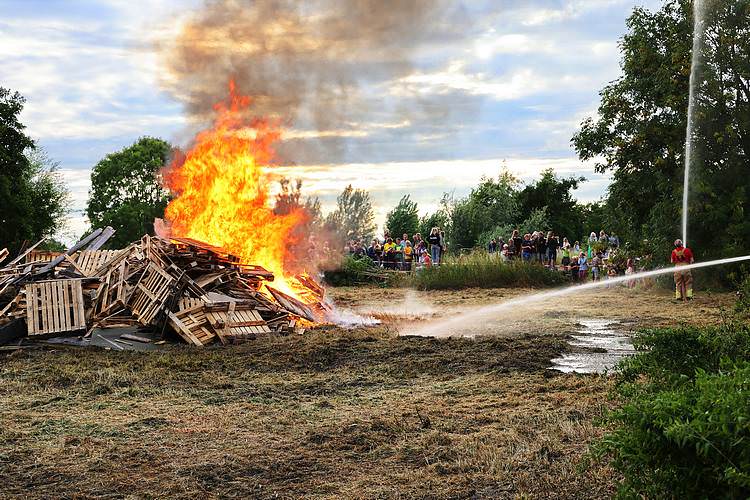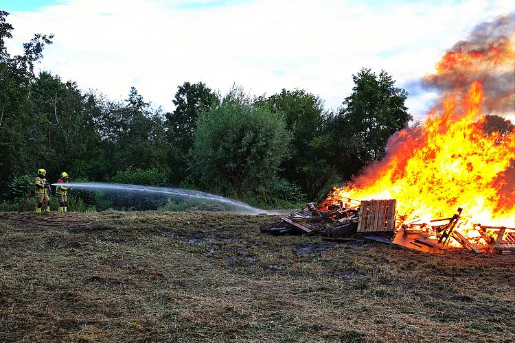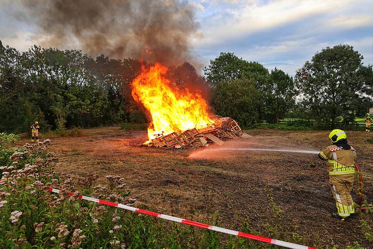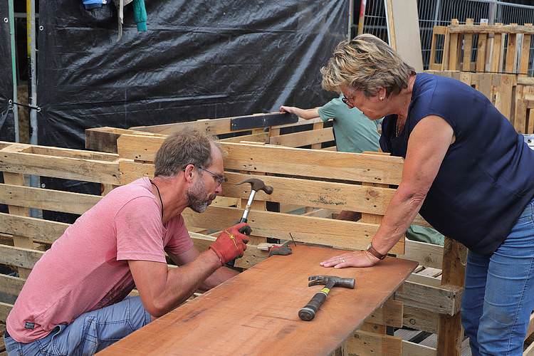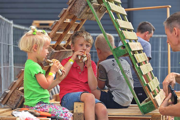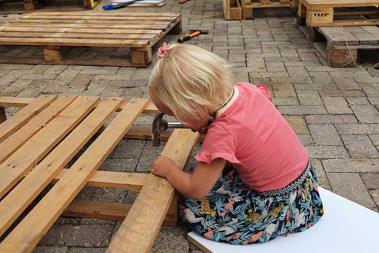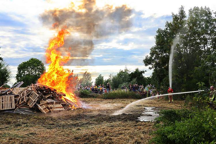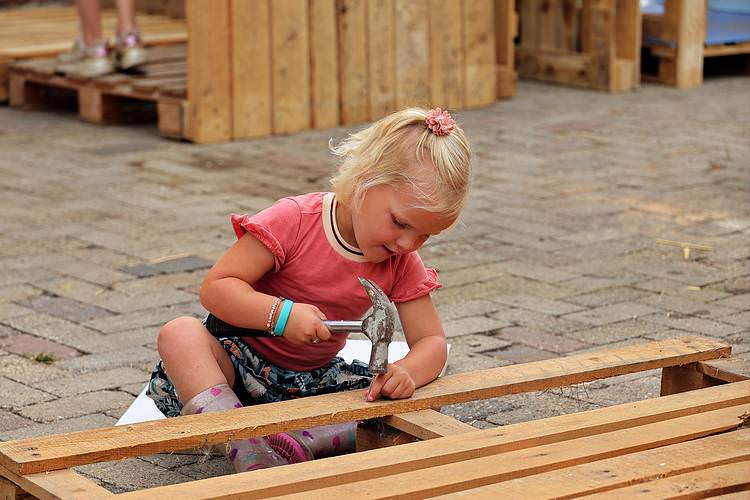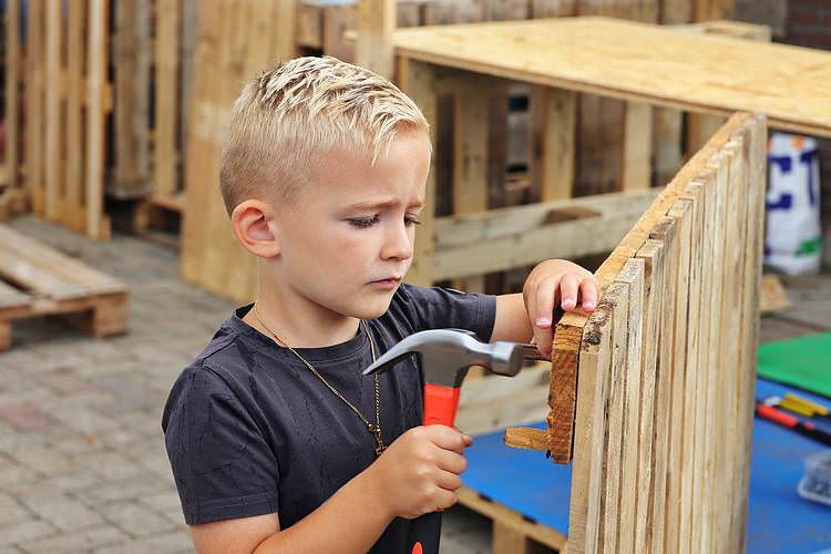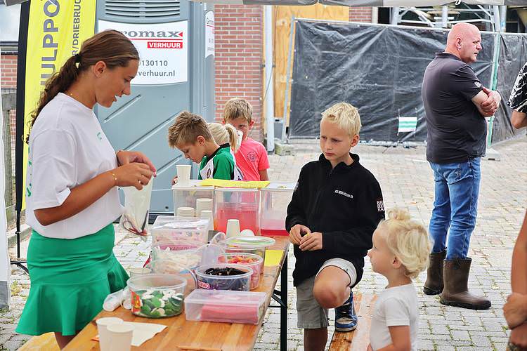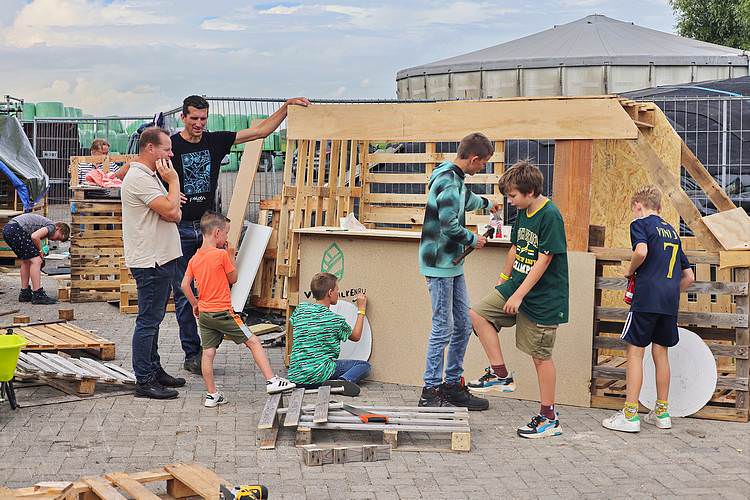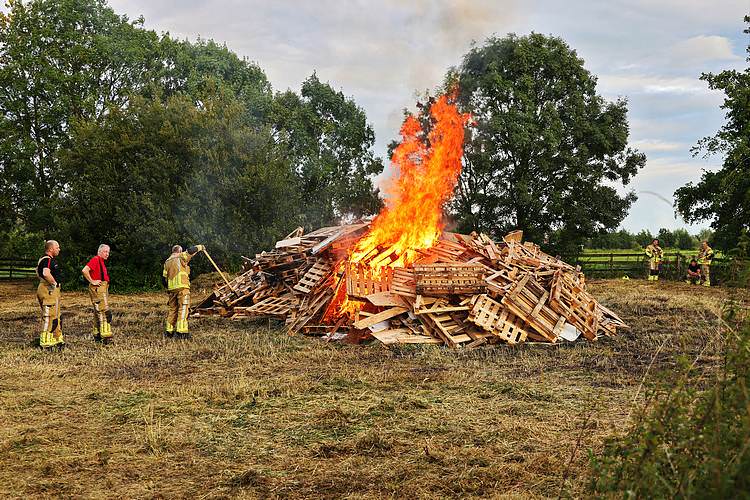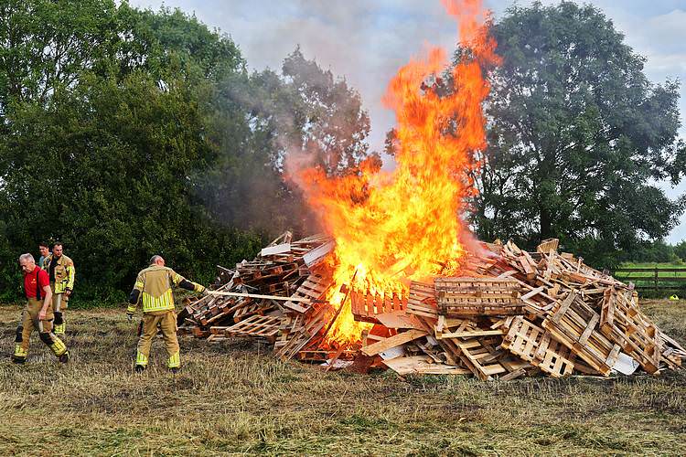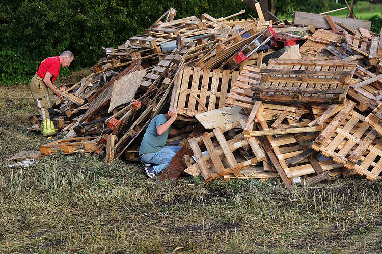 De speelweek en huttenbouw in de laatste vakantieweek was ook dit jaar weer op de bekende en vertrouwde locatie bij 'Boer Bert' aan de Groendijck. Op het erf lag al een grote stapel pallet’s en ander geschikt hout op de jeugdige timmerlieden (en hun assistentie) te wachten. Donderdag kon er vanaf 10 uur tot half 4 naar hartelust worden gebouwd met een lekkere lunch in de hutten. Vrijdag konden de hutten worden ingericht en was er de verkoping en een groot springkussen. Vanaf 2 uur kon er weer worden gesloopt en 's-avonds om 7 uur begon de verbranding van het sloophout op de 'Kromme Kamp'.