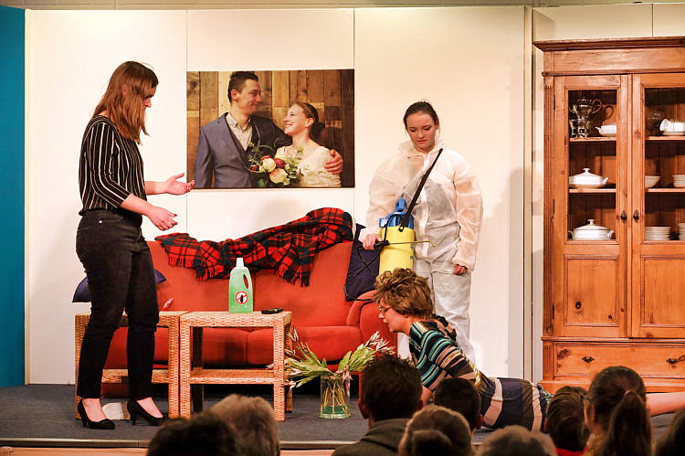 In de bovenzaal van Dorpshuis Custwijc in Driebruggen verraste toneelvereniging CPJ Waarder-Driebruggen 4 avonden
