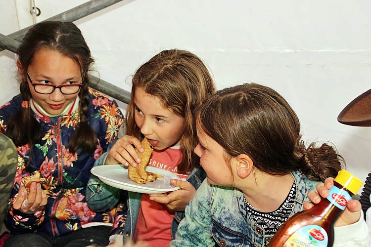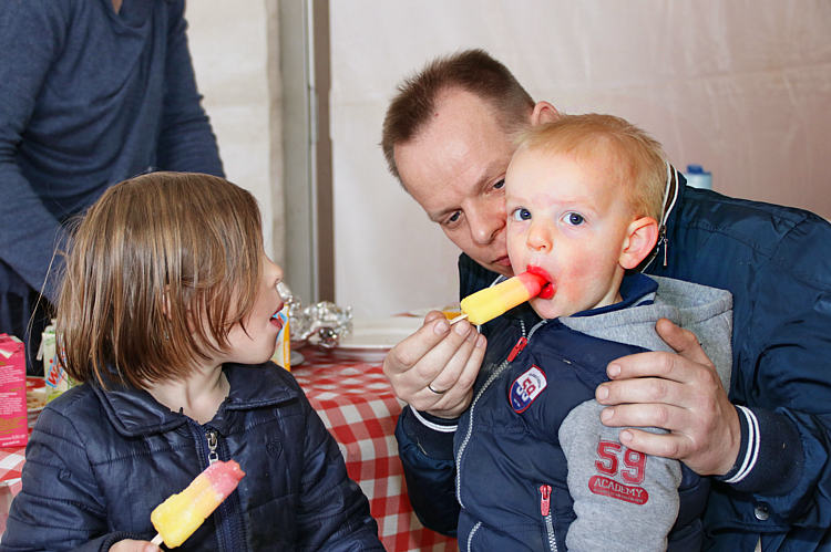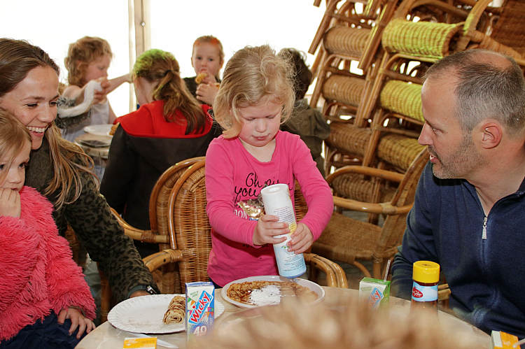 De avond voor Koningsdag werd, naar goed gebruik, rond 17.30 uur begonnen met gezellig pannenkoeken eten voor de kinderen in de grote tent.