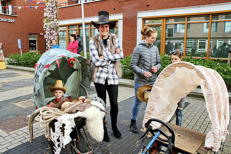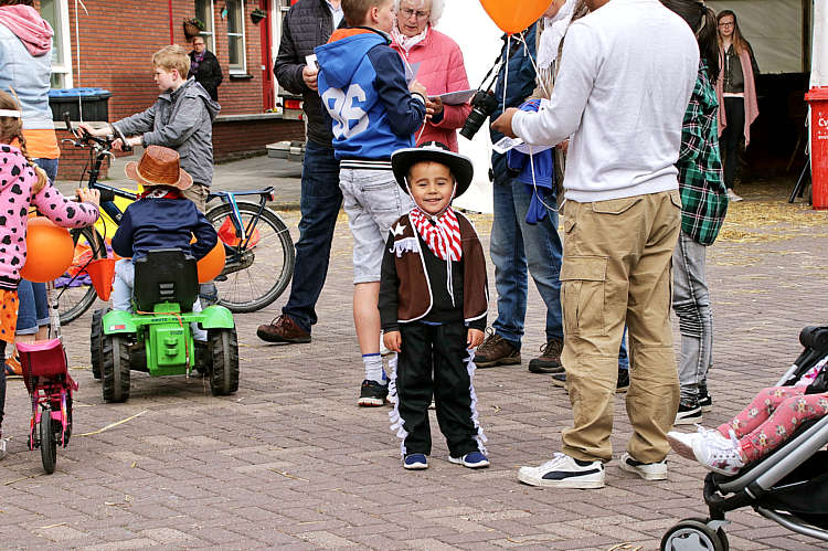 Daarna was het verzamelen voor de WESTERN thema-optocht bij de Maximalocatie waarna voorafgegaan door OBK een feestelijke en muzikale rondgang door het dorp werd gemaakt.