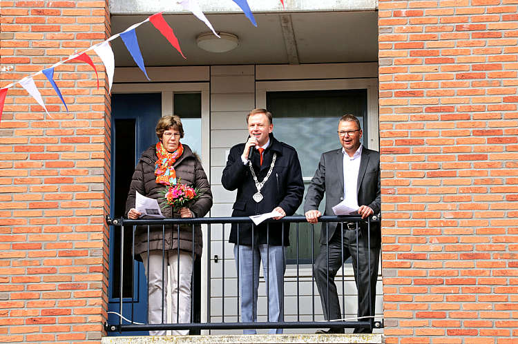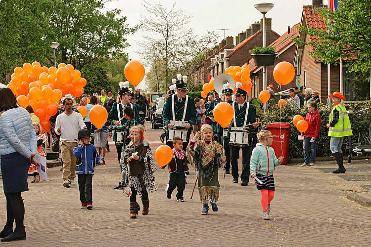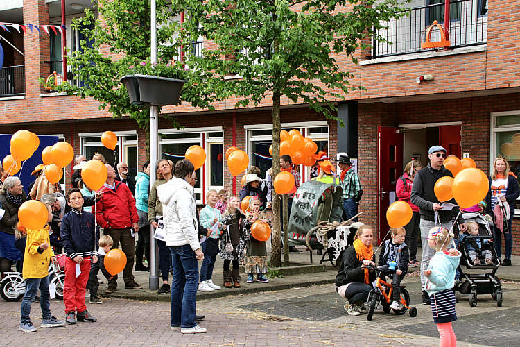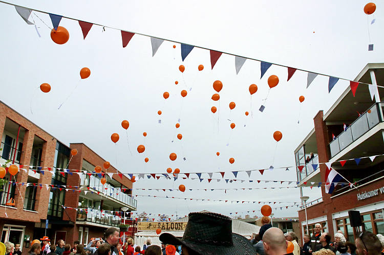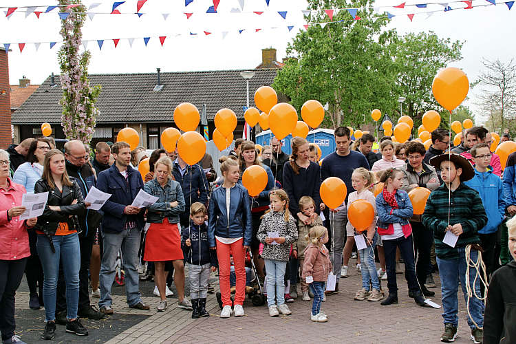 Op het signaal van de burgemeester gingen ook de mooie oranje ballonnen van de kinderen massaal de lucht in waarna het tijdstip daar was om