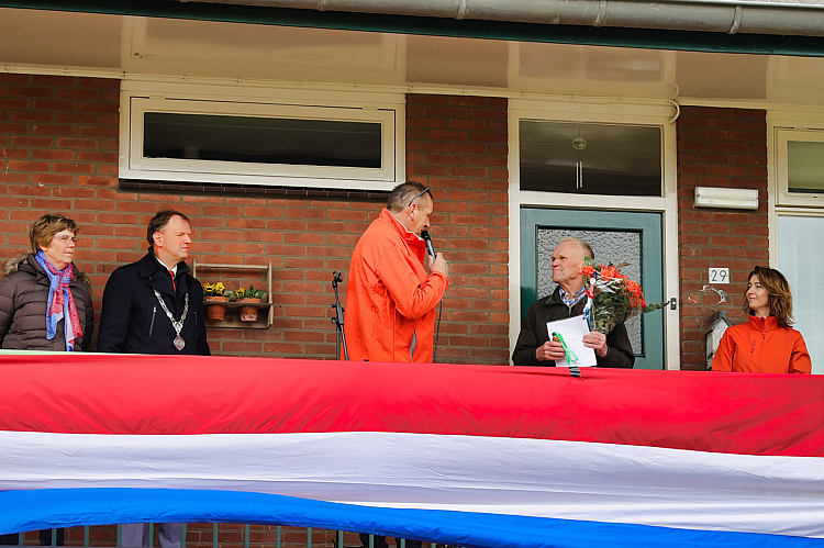 Zoals gebruikelijk begon Koningsdag in Driebruggen op de Lindenlaan met de welkomstwoorden van voorzitter Gerard van den Heuvel,