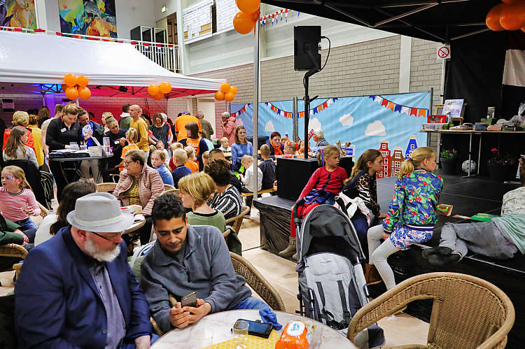 Van wege de onzekere weersomstandigheden is op het laatste moment nog besloten om de festiviteiten niet buiten op het plein,
