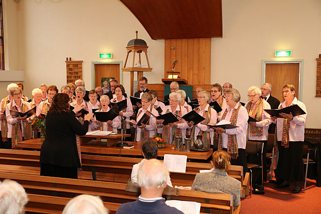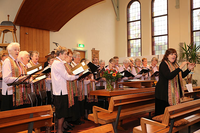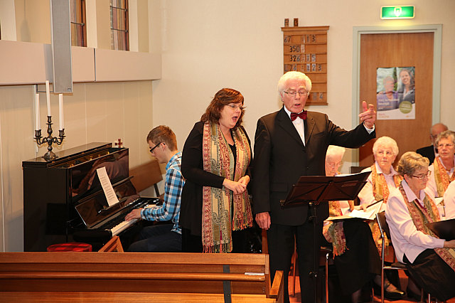 Een geanimeerde zangmiddag met het Chr. Gemengd Koor Nieuwerbrug o.l.v. Pia Schütz, met pianist Jan Willem Bouter en solist Gerrit Hayes.