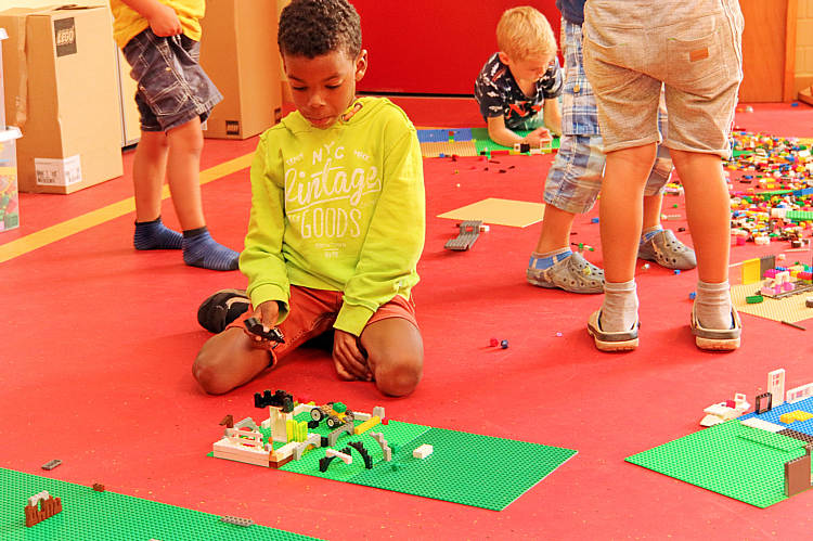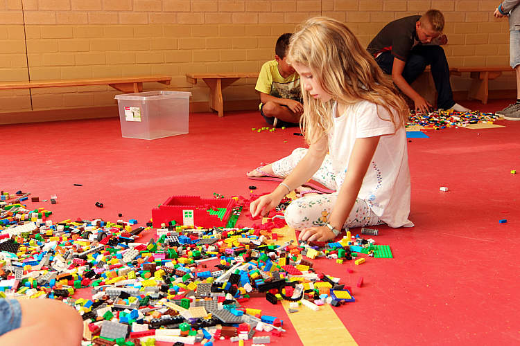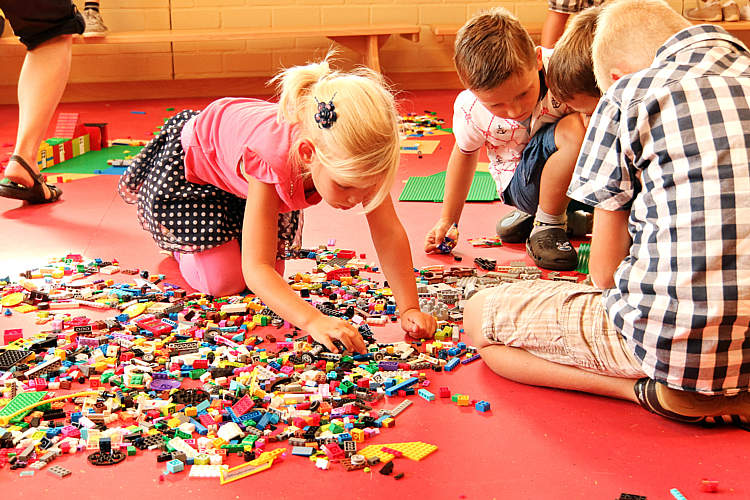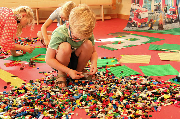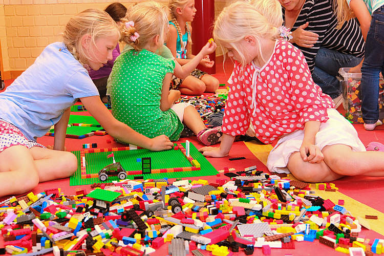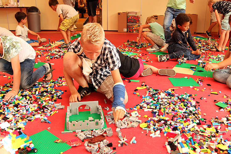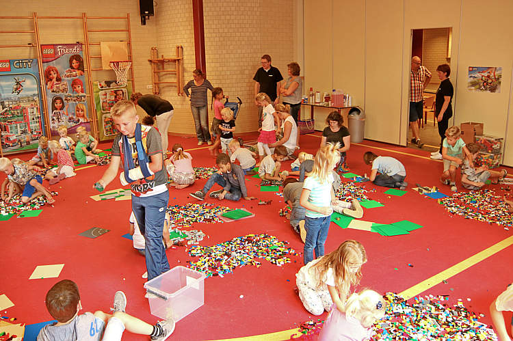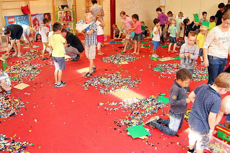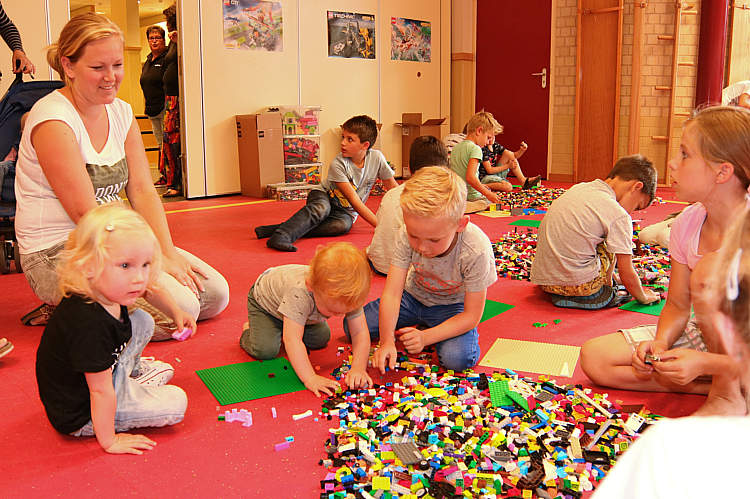 Er was voor een overweldigende hoeveelheid en diversiteit aan LEGO blokjes en andere toebehoren gezorgd en al heel snel