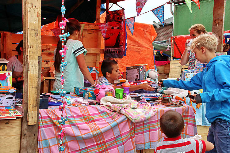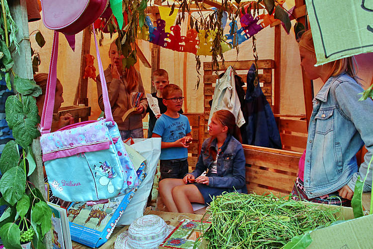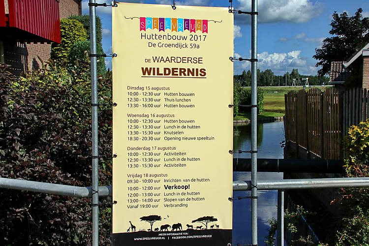De vakantiespelen-huttenbouw activiteiten in Waarder, met als titel en thema “De Waarderse Wildernis”, mochten, net als voorgaande jaren, weer worden gehouden op het gastvrije erf van Boer Bert aan De Groendijck 59a en het naastgelegen weiland. Dinsdag 15 augustus kon worden begonnen met de bouw van de hutten en daar kon ook woensdag nog mee worden doorgegaan. Donderdag stond in het teken van activiteiten en spelletjes en daarvoor stond op het aangrenzende weiland ook een grote opblaasbare stormbaan opgesteld waarop de kinderen hun sportieve krachten en snelheid konden meten. Ook op de aanwezige trampoline werden veel acrobatische kunsten vertoond. Vrijdag was al weer de laatste dag en die stond traditioneel weer in het teken van de vrijmarktverkoop. De hutten waren omgevormd tot aantrekkelijke winkeltjes waar weer vanalles te koop werd aangeboden. Eveneens een vaste traditie is het slopen van de hutten op de vrijdagmiddag. Alle hout werd vervolgens naar de overkant van De Groendijck gebracht waar vervolgens op de “Kromme Kamp” vanaf 19.00 uur, onder flinke belangstelling, en terwijl de vrijwillige brandweer de omringende bomen goed nat hield, de grote verbranding heeft plaatsgevonden.